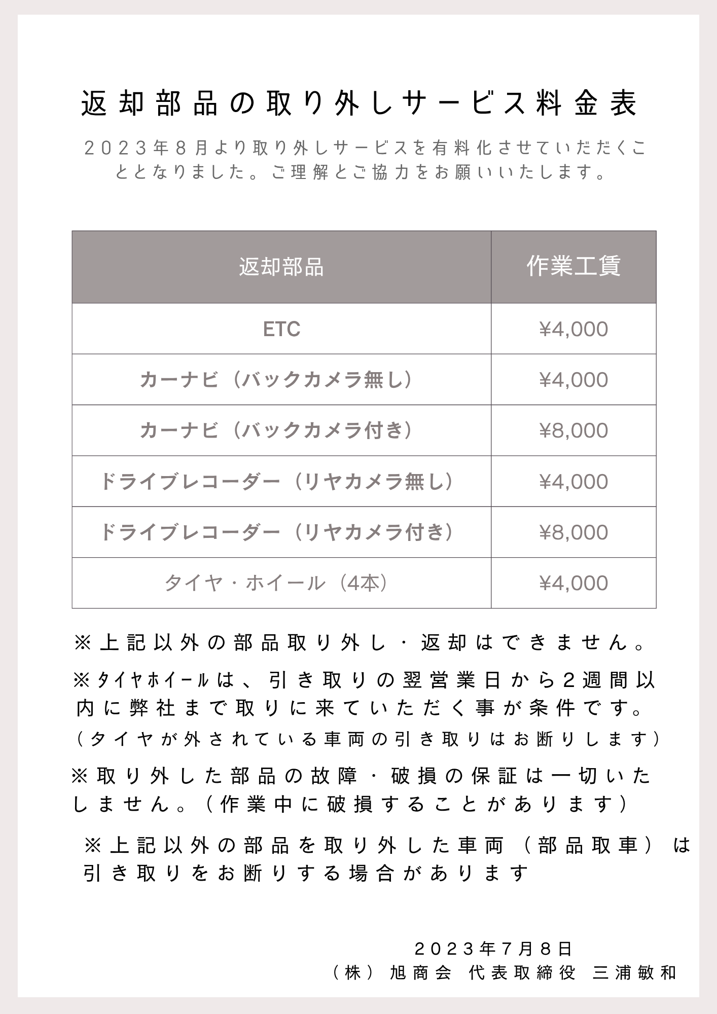 返却部品取り外しサービスは有料です。ご希望の方はご確認ください。