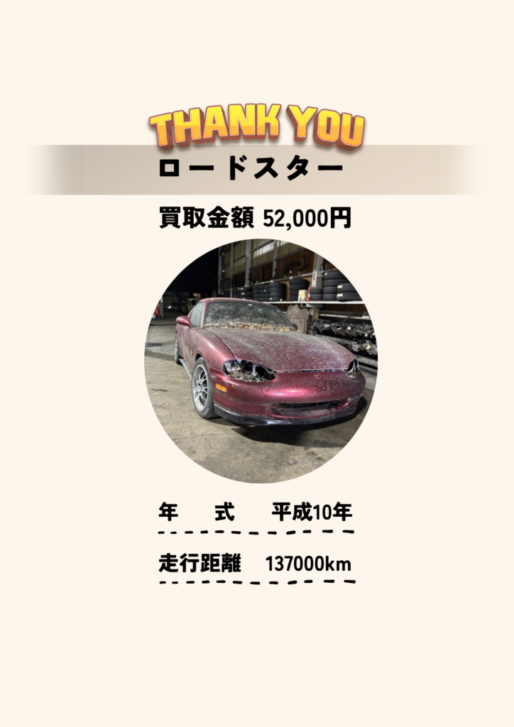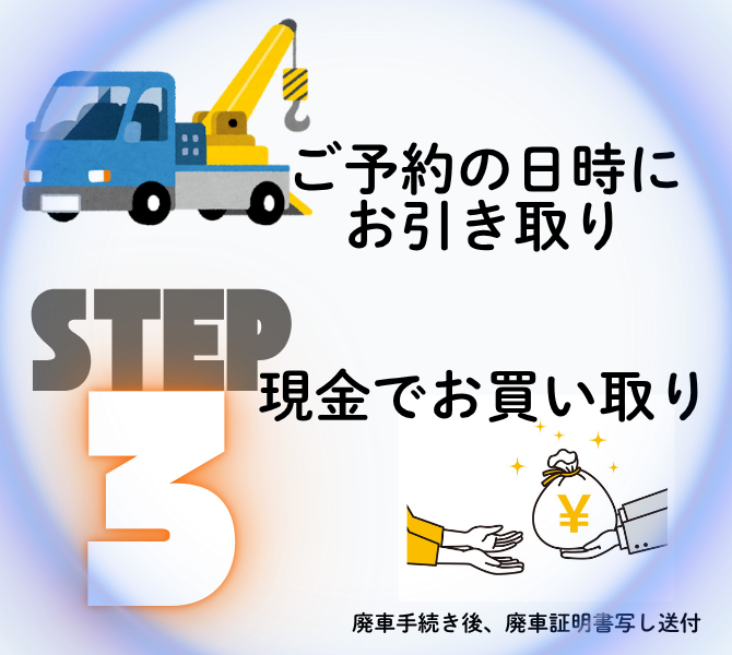 低年式車・過走行車・不動車・事故車すべて買取可能。税金などの還付金も受け取れます。